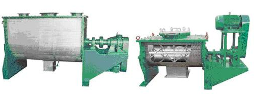 該機(jī)型由容器、螺旋攪拌葉片和傳動(dòng)部件組成:螺旋葉片一般做成雙層或三層,外層螺旋將物料從兩側(cè)向中央?yún)R集,內(nèi)層螺旋將物料從中央兩側(cè)輸送,形成對(duì)流混合。