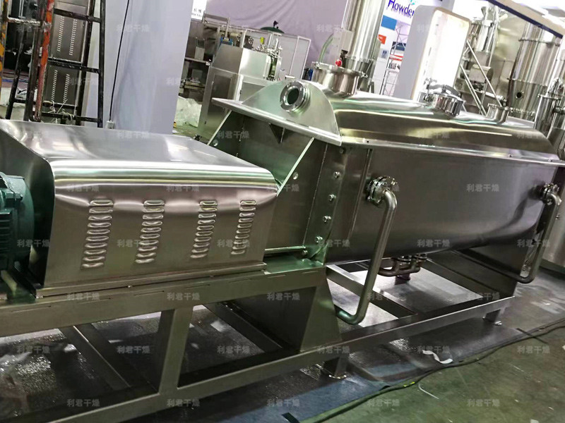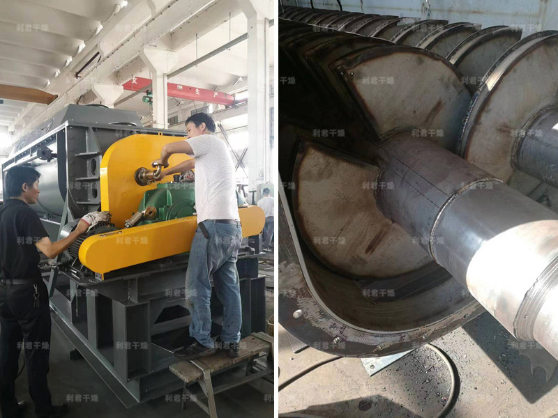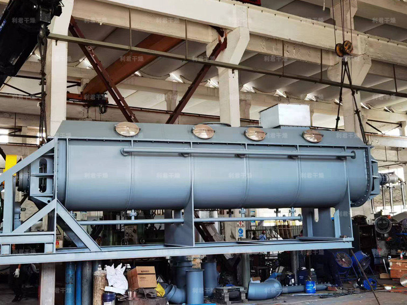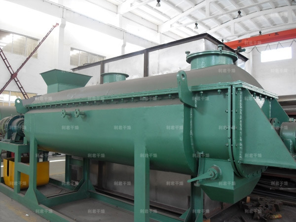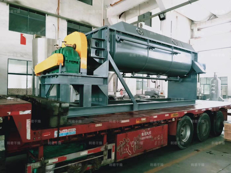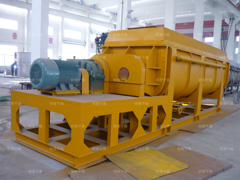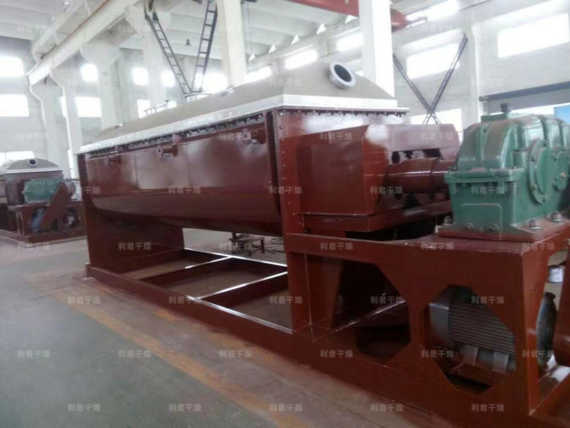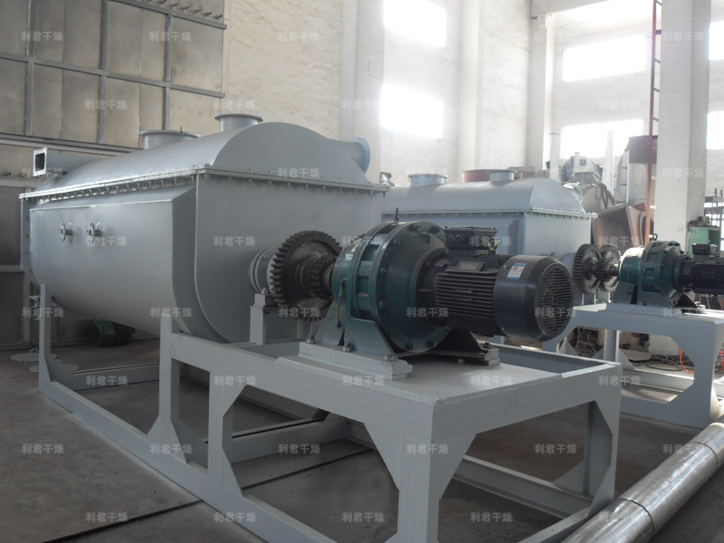 槳葉式干燥器是一種在設備內部設置攪拌漿,使?jié)裎锪显跇~的攪動下,與熱載體以及熱表面充分接觸,從而達到干燥目的的低速攪拌干燥器,結構形式一般為臥式,雙軸或四軸。漿葉式干燥器分為熱風式和傳導式
